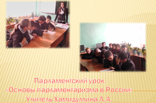 27 сентября в 8 классах прошёл парламентский урок в 8 классах "Основы парламентаризма в России", учитель Хамидуллина Л.А.