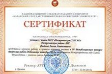 23 апреля на базе Национального исследовательского университета "Казанский государственный технологический университет" на учащиеся Фадеева Лилия и Кондратьева Елена ученицы 11 а класса приняли участие в IV Республиканском конкурсе творческих работ "Нобелевские надежды -2011" и были удостоены сертификатами. МОЛОДЦЫ!