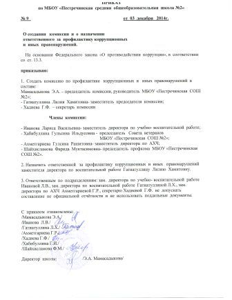 - Приказ о создании комиссии по противодействию коррупции
