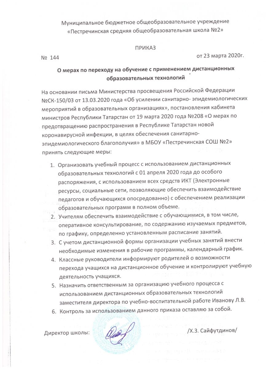 - О мерах по переходу на обучение с применением дистанционных образовательных технологий
