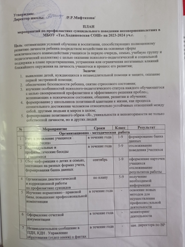 ПЛАН ВОСПИТАТЕЛЬНОЙ РАБОТЫ на 23-24 уч.год