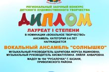 Поздравляем наших музыкальных руководителей Шарипову Ф.Я., Хисматуллину Л.А. с Дипломом Лауревта I степени в номинации "Вокальное творчество" в региональном заочном конкурсе детского художественного творчества!