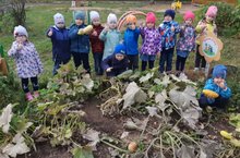 Наступила волшебница-осень, позолотила листья деревьев, одарила людей щедрым урожаем фруктов и овощей. Ребята нашего детского сада очень хорошо знают, что осень - прекрасная пора для сбора урожая. Ведь они сами вместе с воспитателями все лето ухаживали за растениями в огороде: поливали, пололи, рыхлили. И огород их порадовал неплохим урожаем: свекла, лук, укроп, салат, томаты, картофель, кабачки, морковь.