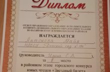 Конкурс "Звездный билет" - один из конкурсов, позволяющий взрослым поверить в возможности ребенка, а ребенку поверитьв собственные силы. Поздравляем Антонову Майю, занявшую 2 место в районном этапе городского конкурса "Звездный билет" (в рамках республиканского конкурса "Живая классика") и руководителя учителя - логопеда Ильину Елену Викторовну высшая квалификационная категория. Пусть это первая победа станет успешным стартом в череде жизненных побед!