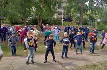 Зарядка у нас сегодня прошла с веселым стартом, в которой приняли участие и вожатые. Победила дружба!