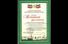 Учитель начальных классов Хабибуллина Фаягуль Наримовна за профессионализм, плодотворный труд, достигнутые успехи в обучении и воспитании подрастающего поколения награждена ПОЧЕТНОЙ ГРАМОТОЙ УО ИК г.Казани.