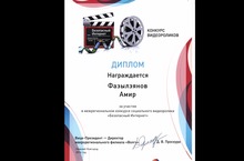 Ученик 3 класса Фазылзянов Амир награжден ДИПЛОМОМ макрорегионального филиала "Волга" за участие в межрегиональном конкурсе социального видеоролика "Безопасный интернет" (г.Нижний Новгород). МОЛОДЕЦ!!!