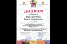 Ученик 7А класса Миннемуллин Ильяс награжден Дипломом победителя республиканского конкурса "IT - чемпион" в номинации "Развитие Портала государственных и муниципальных образовательных услуг Республики Татарстан" в категории "Лучший видеоролик". МОЛОДЕЦ!!! ПОЗДРАВЛЯЕМ!!!