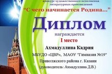 Поздравляем Галиахметову Мадину из 5Л класса и Ахмадуллину Кадрию из 9Б класса с победой в районном конкурсе чтецов среди учащихся «С чего начинается Родина?».