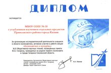За организацию исследовательской деятельности учащихся в области космонавтики Школа № 35 была награждена Дипломами.