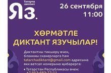 26 сентября в 11:00 на телеканалах ТНВ-Татарстан и ТНВ-Планета пройдет всемирная образовательная акция по проверке грамотности на татарском языке «Татарча диктант».
