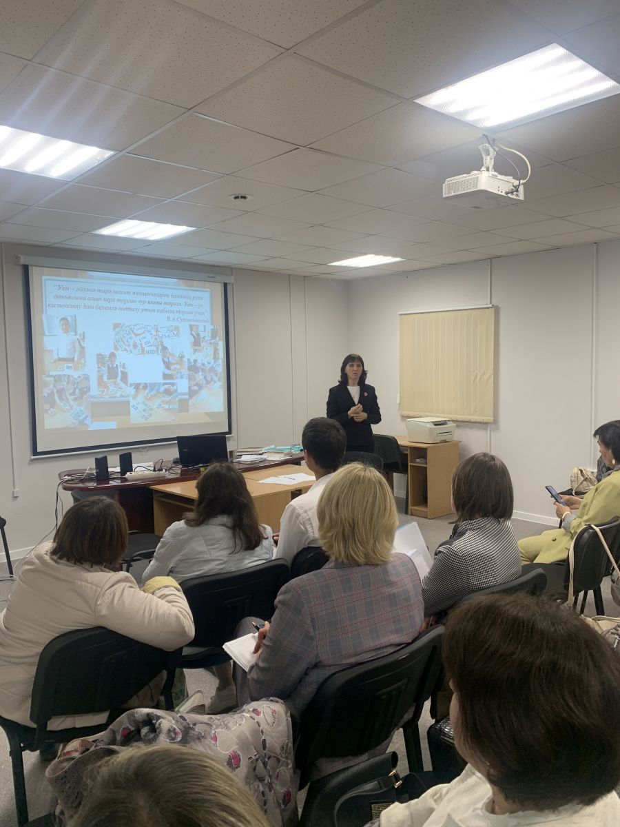 Опубликовано: 14.09.20232023 нче елның 14 нче сентябрендә туган тел (татар теле) укытучыларының “Яңа ФГОСны гамәлгә ашыру шартларында туган (татар) телне һәм әдәбиятын укытуда инновацион юнәлешләр” темасына район методик берләшмә утырышы үтте. Утырышта Казан федераль университетының гомуми тел белеме һәм тюркология кафедрасы доценты, Татарстан Республикасының атказанган укытучысы Фәтхуллова Кадрия Сөнгать кызы “Яңартылган ФДББС шартларында туган тел укытучысының роле “ дигән темага чыгыш ясады. 21нче гимназиянең иҗади эшләүче туган (татар) тел укытучысы Хабибрахманова Минзилә Мөдәрис кызы мастер-класс күрсәтте. Утырыш укытучылар өчен файдалы һәм актуаль булды.