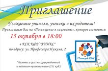 10 октября 2015 года в IT-лицее КФУ состоялся день открытых дверей. Гостями учреждения стали заинтересованные учащиеся и их родители из разных районов Республики Татарстан и города Казани.