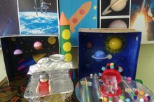 Каждый год ко дню космнавтики мы проводим беседы, делаем с детьми поделки, аппликации, и устраиваем выставку поделок совместно с нашими родителями и этот год не исключение!