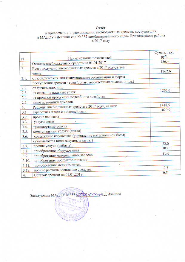 Отчет о привлечении и расходовании внебюджетных средств за 2017 год