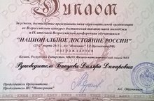 Поздравляем призера Всероссийского конкурса достижений талантливой молодежи "Национальное Достояние России" в г. Непецино Махянова И., ученика 11М класса, руководитель Миникаев Т.Р.