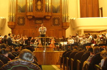 Уроки музыки с оркестром 07.02.2014 7 февраля учащиеся 5-х классов посетили Большой Концертный Зал Консерватории. Для учащихся был организован необычный урок - Урок музыка и оркестром. Ребята прослушали произведения великих композиторов, познакомились с музыкальными инструментами и сами поучаствовали в оформлении музыкального произведения.