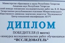 Дипломом Победителя (1 место) регионального конкурса исследовательских работ обучающихся "Исследователь" отмечена работа учащихся нашего лицея Ефимова В. и Ефимова Н. и их научных руководителей Н.П. Мищенко и Г.А. Абдуллиной. Желаем дальнейших Побед!