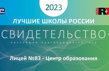 Лицей №83 - Центр образования отмечен свидетельством о том, что лицей вошел в Рейтинг лучщих школ республики Татарстан по количеству выпускников, поступивших в ведущие вузы России.