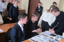 В рамках Дня открытых дверей 16 февраля 2019 г. учащиеся 8И2 класса посетили криминалистическую лабораторию Российского государственного университета правосудия. Преподаватель РГУП Иванов А.Г. показал, как снимаются отпечатки пальцев.