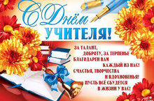 От всей души поздравляем вас с Днём учителя. В этот день мы хотим поблагодарить вас за ваш ежедневный труд, вашу ежеминутную работу. В ваших руках — образование детей, которое станет залогом будущего всей страны. Спасибо вам за время и силы, которые вы отдаёте своим ученикам.
