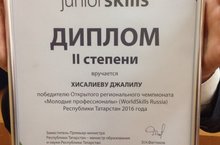 Поздравляем Хисалиева Джалила , ученика 6Г класса с Победой (диплом 2 степени)в Открытом региональном чемпионате "Молодые профессионалы" ( WorldSkills Rossia) Республики Татарстан 2016» МОЛОДЕЦ!!! МЫ ГОРДИМСЯ ТОБОЙ!!!