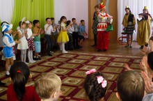 Фестиваль детского творчества "Весенняя карусель". Исполнительница песенки о дне рождении Саша Ли, дети подготовительных групп ей помогали.