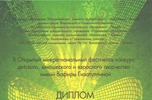 15 ноября в ДМШ № 26, сотоялся II Открытый межрегиональный фестиваль- конкурс детского, юношеского и взрослого творчества имени Вафиры Гизатуллиной. Лауреатами стали учащиеся и преподаватели ДШИ:
