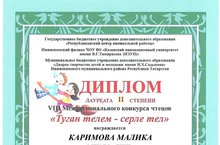 Поздравляем призера конкурса - Каримову Малику - Лауреата 2 степени, преп. Васельева А.А.