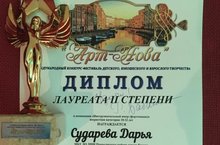 Поздравляем Судареву Дарью - Лауреата 2 степени на конкурсе , преподаватель Абитова Марина Владимировна.