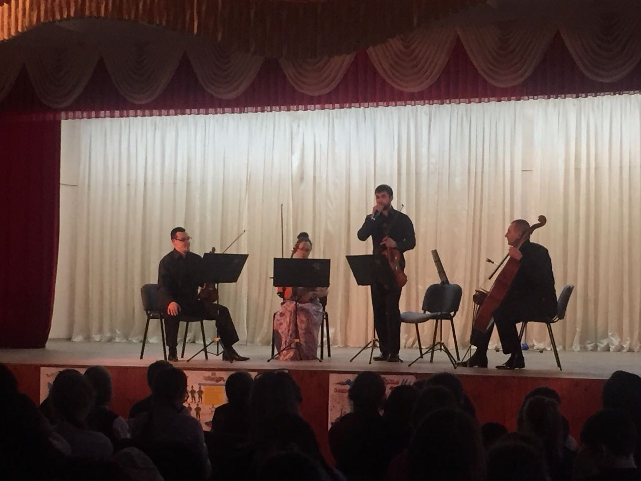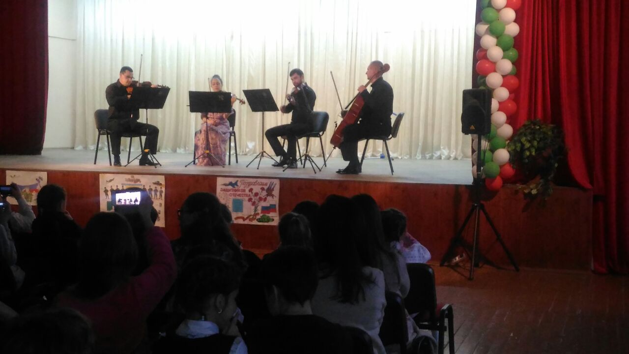 Сегодня в Актовом зале СОШ№69 состоялся концерт "Волшебные струны" струнного квартета ГСО РТ (художественный руководитель и главный дирижер Государственного симфонического оркестра РТ Александр Сладковский). В концерте прозвучали произведения как композиторов - классиков, романтиков, так и произведения современных композиторов. Концерт прошел с большим успехом.