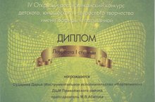Мария Архипова - ДИПЛОМАНТ 1 СТЕПЕНИ