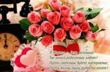 В этот замечательный день желаем вам солнечного настроения, цветов и комплиментов, любви и счастья, исполнения желаний, мира и благополучия. Пусть вас всегда согревает тепло домашнего очага, а ваши семьи, родные и близкие будут счастливы!