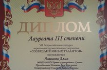 Гилязова Самира-Лауреат III cтепени, преп.Салахова Э.И