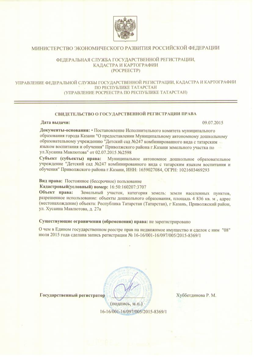 Муниципальное автономное дошкольное образовательное учреждение «Детский сад №247 комбинированного вида с татарским языком воспитания и обучения» Приволжского района г. Казани