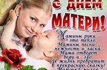 24 ноября 2013 года - замечательный праздник День матери! Эти строчки мы посвящаем всем дорогим и любимым матерям... В День Матери за всё благодарим Вас: За ласку рук, заботы и тревоги, За этот мир, прекрасную зарю, И первый шаг по жизненной дороге, За нежность, безграничную любовь, За добрые слова и за терпенье, "СПАСИБО!" - говори мы вновь и вновь, Вы наши ангелы, вне всякого сомненья! Пусть в вашей жизни будет лишь добро, Над головой пусть солнце ярко светит! Вы есть! И на душе у нас тепло, Вы наши милые и лучшие на свете!!! 24.11.2013