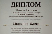 Поздравляем Садрутдинову Камилу с победой! Лауреат 1 степени Международного конкурса искусств "Аrt перспектива" конц. Сабирзянова Н. Ю. кл. преп. Настаушевой Л. Г.. Молодец. Камилочка!!! Сегодня за Камилу болела вся её семья!