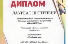 Республиканский конкурс-фестиваль детского и юношеского творчества "Taт-ARS-Тан" Младший хор ДИПЛОМ Лауреата III степени