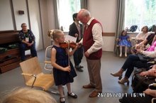Замечательным концертом в детском саду 43, состоявшимся 17 мая, завершила сезон "Детская филармония". В этом садике мы впервые, и были встречены очень тепло, с большим интересом. В интерактивной беседе дошкольники познакомились с некоторыми композиторами, музыкальными инструментами. Духовой отдел был представлен Шаймардановой Алией и Тильтиной Софьей ( кл. преп. И.В.Шевелевой). Девочки продемонстрировали малышам звучание блокфлейты, курая и флейты. Абдрахманов Искандер ( кл. преп. В.М. Неклюдова ) исполнил на баяне Вальс, а Гизатуллина Нигина ( кл.преп. Т.И.Стройковой) на фортепиано пьесу Д. Шостаковича "Мурзилка". Ярким и праздничным заключительным аккордом стало выступление ансамбля скрипачей "Звёздочки " под руководством Л.Г. Настаушевой. Автор и ведущая проекта - Елена Ченпалова.