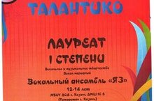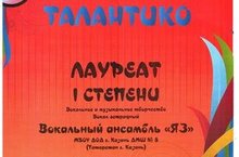 Международный интернет-конкурс для детей, молодежи и взрослых "Талантико" Вокальный ансамбль "Яз" (вокал эсрадный) ДИПЛОМ Лауреата I степени