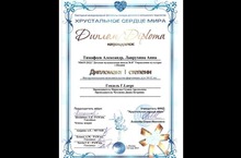 Награжден ансамбль Тимофеев Александр и Лаврухина Анна ДИПЛОМАНТ I степени на Ежегодном международном фестивале-конкурсе детского и юношеского творчества "Хрустальное сердце мира" в номинации инструментальное исполнительство (фортепиано) дуэт.