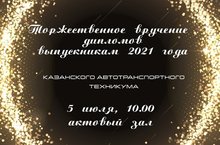 Сегодня в актовом зале Казанского автотранспортного техникума прошло торжественное вручение дипломов выпускникам 2021 года.
