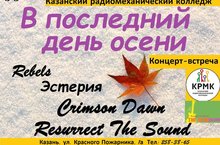 В Последний день осени -30 ноября-13:30 в нашем Казанском радиомеханическом колледже пройдёт концерт-встреча школы рока "The RoaD". Приглашённые коллективы: