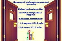 Казанский радиомеханический колледж будет рад Вас видеть на днях открытых дверей, которые состоятся: