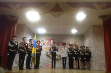 Стоя, зал приветствовал ветеранов педагогов участников и тружеников тыла Великой Отечественной войны. Воспитанники учреждений дополнительного образования вручили им цветы и памятные сувениры.