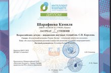 образовательной программы "ИНТЕЛЛЕКТУАЛЬНО-ТВОРЧЕСКИЙ ПОТЕНЦИАЛ РОССИИ" МАН "Интеллект будущего". В Чтениях приняли участие 136 школьников и студентов из более, чем 10 регионов Российской Федерации. Республику Татарстан представляла Шарафиева Камиля, ученица 9 класса средней общеобразовательной школы №35 Приволжского района г. Казани (руководитель: Кузьмина К.И., учитель биологии). Научно-исследовательский проект "Выращивание растений в условиях