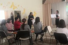 Согласно годовому плану ДОО в МБДОУ № 5 прошел педагогический совет № 3 на тему: «Создание билингвальной среды в ДОУ в соответствии ФГОС ДО на основе реализации проекта по апробации УМК в течение дня и во взаимодействии с родителями». Цель педсовета: совершенствовать систему совместной работы детского сада и семьи при обучении детей двум государственным языкам. Педсовет прошел в форме «Мозгового штурма», в процессе которого команды педагогов обсудили и представили «Модель билингвальной среды ДОУ».