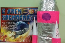Сегодня наш детский сад отмечал праздник - 50-летие со дня первого полёта человека в космос. К этому празднику готовились все группы: проводили беседы, рассматривали иллюстрации, делали аппликации, рисунки, панно. Вместе с родителями были приготовлены выставки поделок: макеты космических кораблей и орбитальных станций, луноходов и космонавтов.