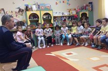 Тимомеев Р.И. провел беседу с воспитанниками детского сада по профилактике дорожно-транспортных происшествий, о соблюдении правил взрослыми и детьми в роли пешеходов и пассажиров.