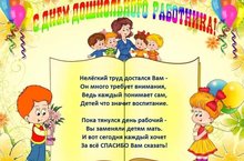 Уважаемые коллеги! Поздравляем вас с профессиональным праздником - Днем дошкольного работника! Желаем вам крепкого здоровья, благополучия, успехов и прекрасного настроения! Пусть ваша доброта и педагогическое мастерство превратят каждый день ребенка в детском саду - в день радости и счастья! С праздником!!!